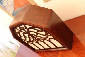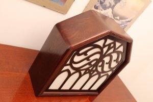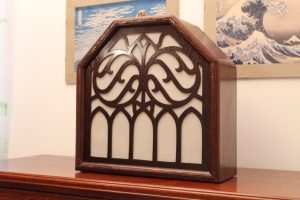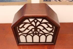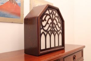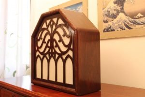 Notes: Fretsaw decor and carved side moldings on the front panel like model T4. Gothic T3 in oak, Gothic T4 in mahogany.